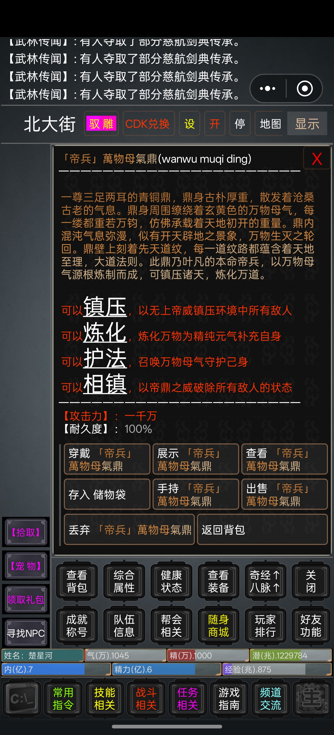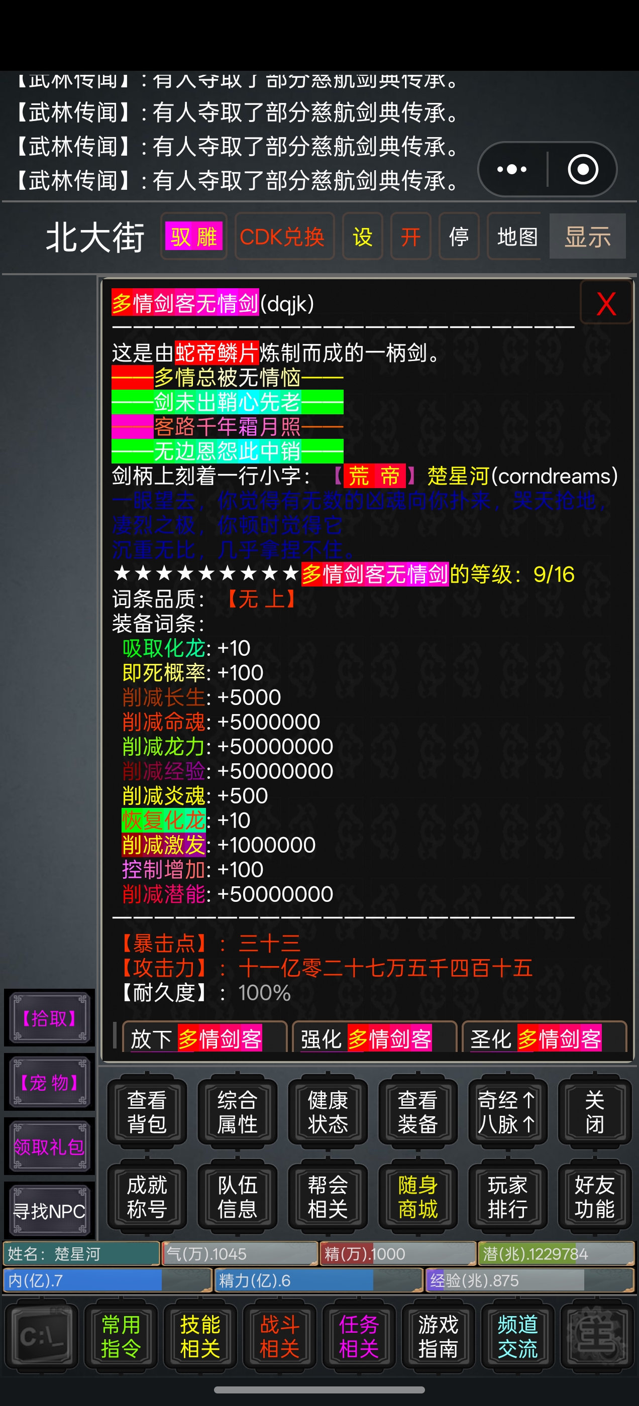 自制装备、词条打造、特效丹药、灭敌符箓