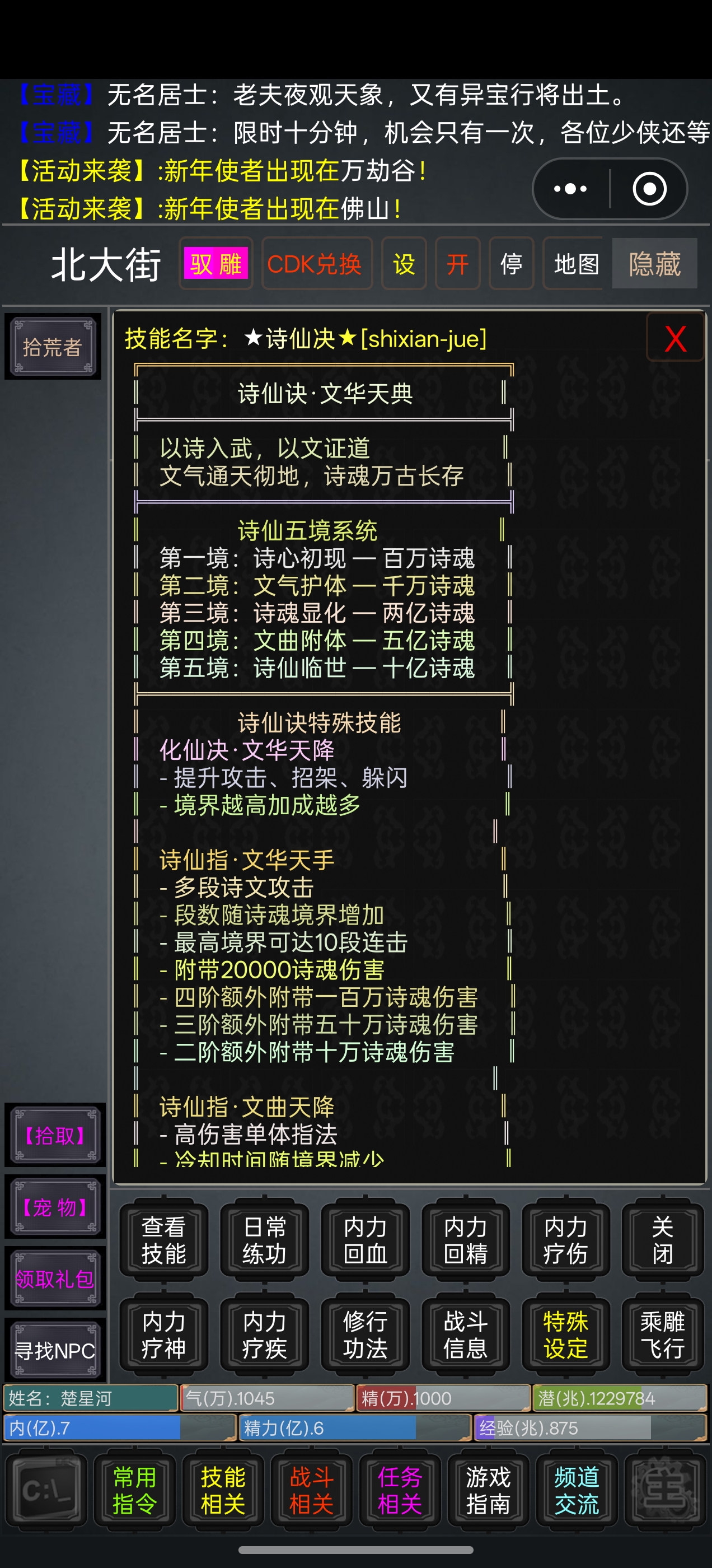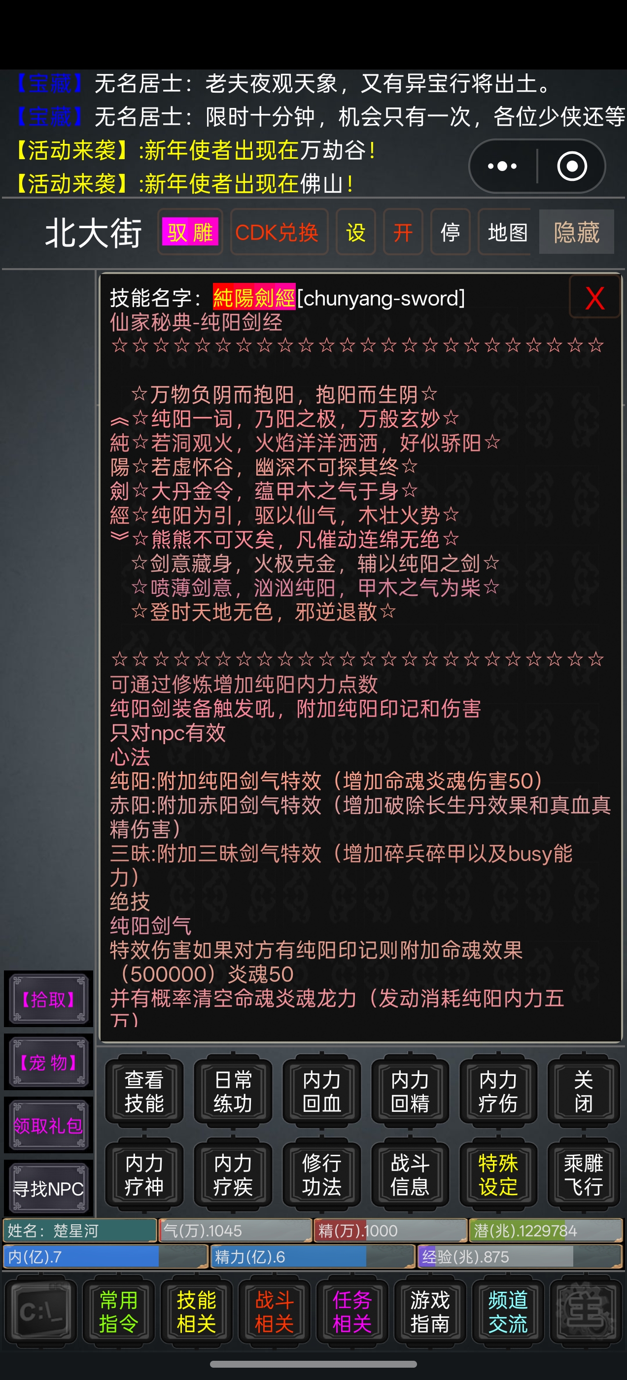 纯阳、龙力、荒力、诗魂等多套不同体系武学功法